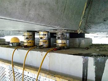 四川橋梁頂升加高須根據(jù)橋梁實際情況,對簡支結(jié)構(gòu)體系橋梁,可單跨進行頂升,也可一聯(lián)同時進行頂升;對連續(xù)結(jié)構(gòu)體系橋梁,應(yīng)按一聯(lián)同時頂升,并保證頂升同步。施工時應(yīng)根據(jù)頂升計算的支撐反力,選擇千斤頂?shù)捻斏龂嵨唬WC千斤頂頂升噸位需大于2倍的頂升重量。