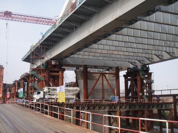 隨著我國(guó)鋼筋混凝土等截面連續(xù)梁橋和斜拉橋修建的越來(lái)越多,很多時(shí)候就要采取橋梁頂推法的施工。橋梁頂推指的是梁體在橋頭逐段澆筑或拼裝,用千斤頂縱向頂推,使梁體通過(guò)各墩頂?shù)呐R時(shí)滑動(dòng)支座面就位的施工方法。頂推施工是在橋臺(tái)的后方設(shè)置施工場(chǎng)地,分節(jié)段澆筑梁體,并用縱向預(yù)應(yīng)力筋將澆筑節(jié)段與已完成的梁體連成整體,在梁體前安裝長(zhǎng)度為頂推跨徑0.7倍左右的鋼導(dǎo)梁,然后通過(guò)水平千斤頂施力,將梁體向前方頂推出施工場(chǎng)地。重復(fù)這些工序即可完成全部梁體施工。